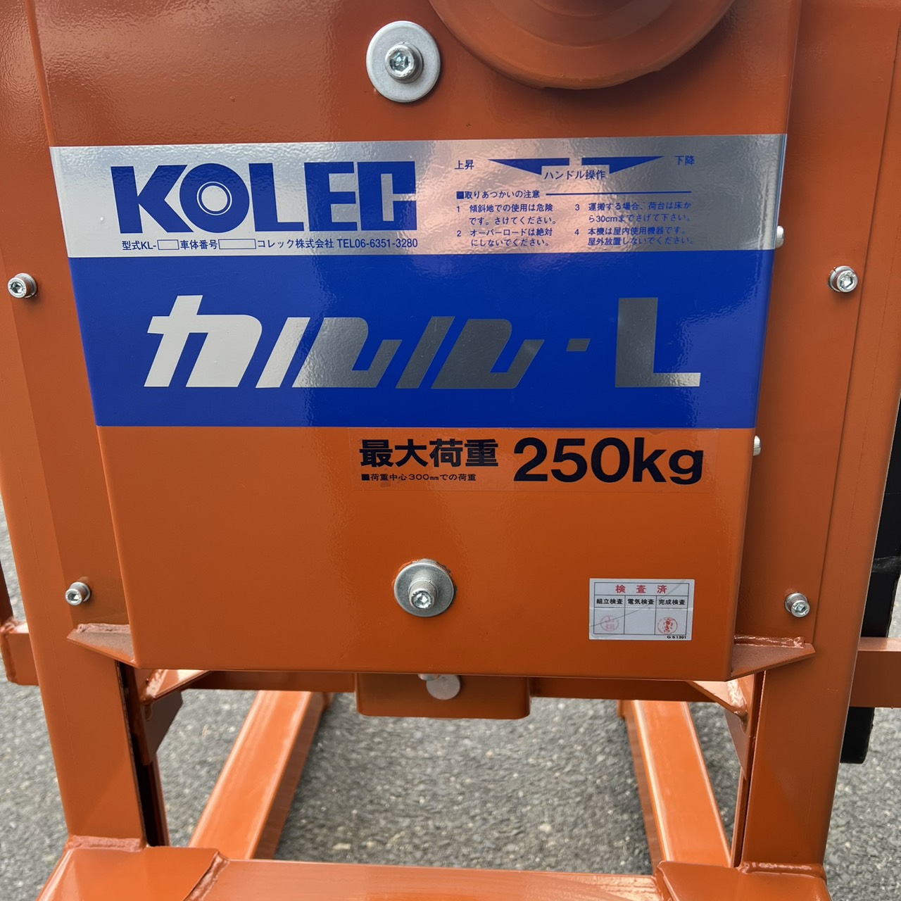 | 最大荷重 | 250 kg |