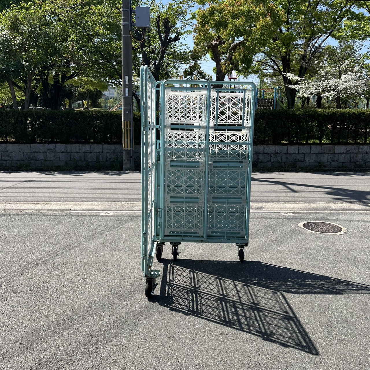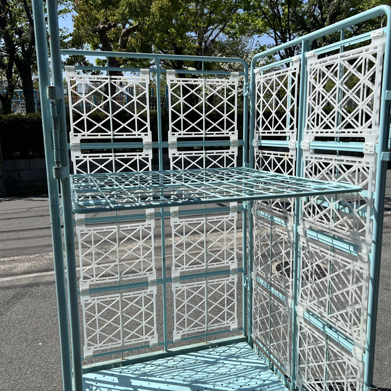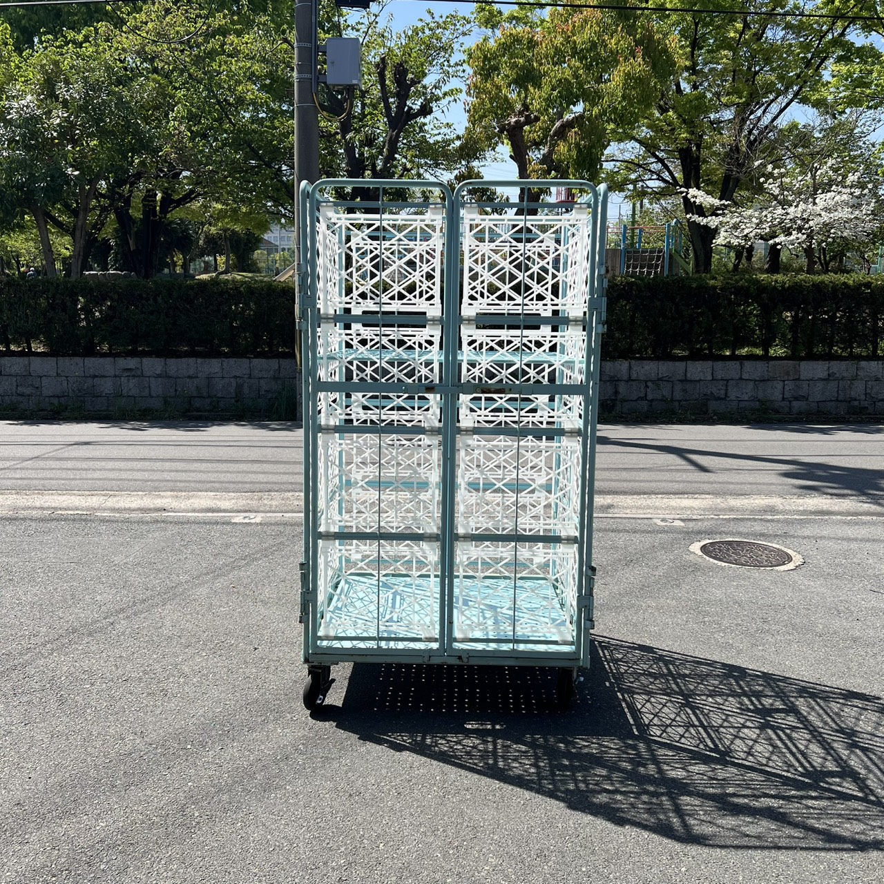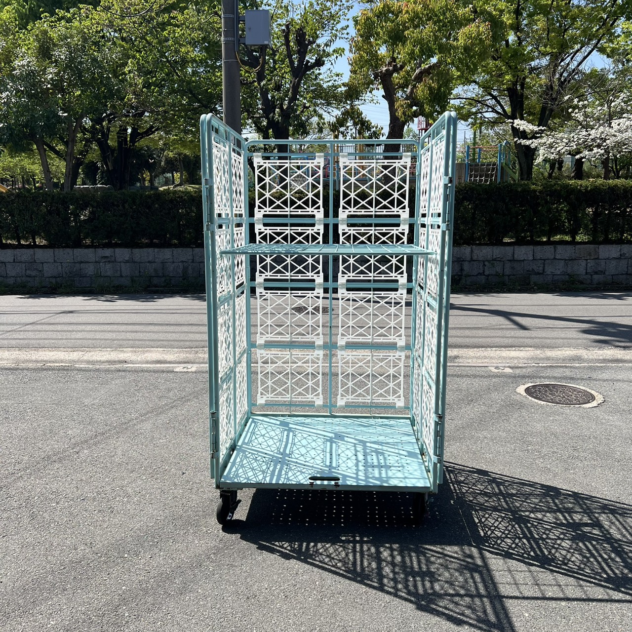 カゴ台車[観音扉&中間棚付]